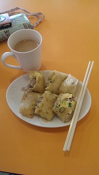 泡菜雪花肉蛋餅+豆漿紅茶超好吃!!!!